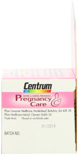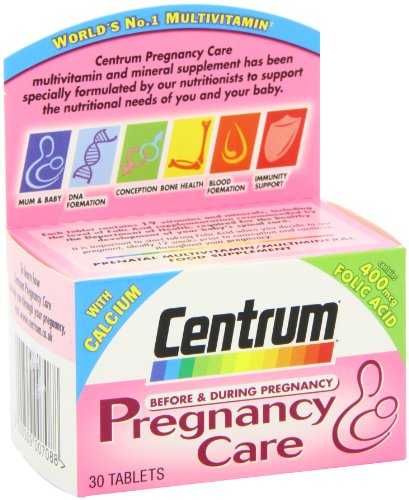 Centrum is the world's No 1 selling multivitamin. Centrum Pregnancy Care multivitamin and multimineral supplement has been specially formulated by our nutritionists to support the nutritional needs of you and your baby. Each tablet contains 19 vitamins and minerals, including the level of folic acid supplementation recommended by the Department of Health, required for the healthy development of your baby's spinal cord. It is important to start taking folic acid when you decide to get pregnant, ideally 12 weeks prior to conception and continue throughout your pregnancy. Centrum Pregnancy Care is a new comprehensive multivitamin and mineral supplement that is scientifically formulated to support the specific nutritional needs of women who are pregnant or trying to conceive. Zinc contributes to fertility and reproduction and the production of DNA. Calcium, vitamin D and magnesium help maintain strong bones. Folic acid, vitamin B12 and iron help maintain normal blood formation which is important for blood supply doing pregnancy. Vitamin C helps maintain a healthy immune system which can be particularly important at this time.
