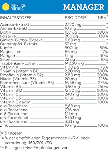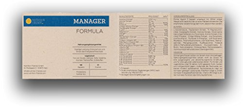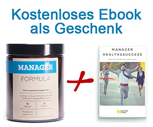 Manager Formula – Der Vitalstoffkomplex für mehr Leistung, Energie und Gesundheit auf der Arbeit Die Manager Formula ist eine maßgeschneiderte Mikronährstoff-Kombination aus Vitaminen, Mineralstoffen, Spurenelementen und sekundären Pflanzenstoffen. Sie wurde speziell entwickelt, um Menschen mit hohem mentalem Leistungsbedarf und anspruchsvollen geistigen Anforderungen in der Schule, im Beruf, beim Sport und im Alltag zu helfen! Die praktische Kapselform ermöglicht dir jederzeit eine Extraportion an Leistung, Energie und Gesundheit mit dabei zu haben. Sei für jede stressige oder leistungsintensive Situation gewappnet und versorge deinen Körper mit allem, was er braucht, um die bestmöglichen Ergebnisse zu erzielen. Mehr Leistung, Konzentration & Energie – Dein BOOST für GEHIRN, GEIST & KÖRPER Leistung unterstützt die geistige Leistungs-, und Konzentrationsfähigkeit verringert Müdigkeit + Erschöpfung und schenkt Dir neue Energie versorgt dich mit allen Nährstoffen die du am Tag benötigst, um deine Fähigkeiten zu boosten ! Gesundheit schützt Deine Zellen vor oxidativen Schäden unterstützt Dein Immunsystem trägt zu einer normalen Herzfunktion und Sehkraft bei Konzentration, Wachheit und geistige Leistungsfähigkeit sind in unserer Gesellschaft heutzutage wichtiger denje. Nutze deswegen die Manager Formula, um das Maximum aus dir selbst rauszuholen, aber auch deiner Konkurrenz immer einen Schritt voraus zu sein. Kostenloses E-Book „MANAGER – HEALTH & SUCCESS“ In diesem E-Book erfährst Du, wie Du deine Karriere durch die optimalen Rahmenbedingungen und einfach anwendbare Tipps und Tricks, so erfolgreich & gesund wie möglich gestaltest.