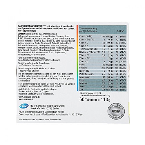 Mit Centrum frisch & fruchtig zeigt sich, dass Gesundes auch richtig lecker sein kann. Darüber hinaus enthält es natürlich alle Vitamine sowie Mineralstoffe und Spurenelemente und leistet damit einen wertvollen Beitrag zur ausgewogenen Ernährung.