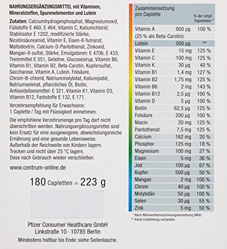 Pfizer Centrum A – Zink Capletten 180 Stück